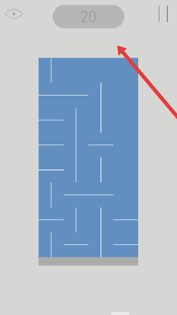 3、持续点击蓝色区域内的白色长线,通过缩短操作完成挑战,上方分数(如“20”)随进度提升,达成关卡目标。