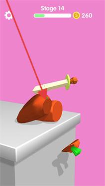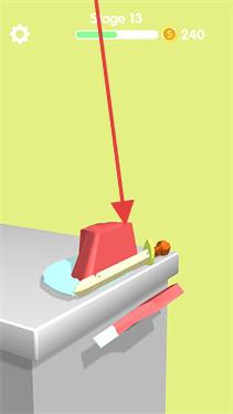 2、看准时机点击,让刀具下落切片,避开障碍物,精准切割目标物品。