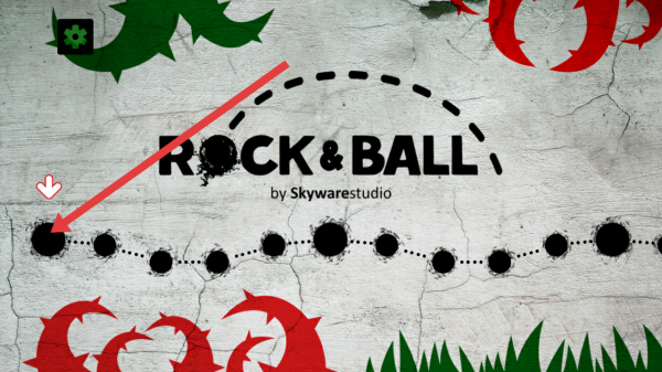 1、进入岩石和球的游戏主界面,操控者需要点击箭头指向的首个黑色圆点,开启你的关卡冒险。