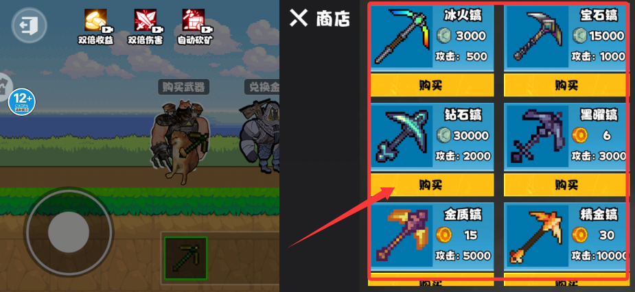 3、获得的资源可在装备商店兑换更强力的开采工具,提升挖掘的效率。