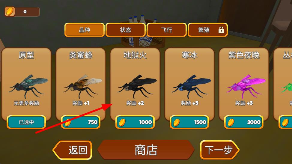 3、完成“偷食甜点”“繁衍后代”等任务获取积分,用积分升级飞行速度或解锁彩色翅膀外观,提升生存能力。