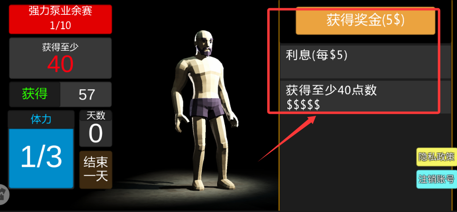 2、独特的健康平衡机制颇具创意,玩家需在肌肉增长与身体健康间寻找平衡点,过度追求短期效果可能导致角色状态下滑。