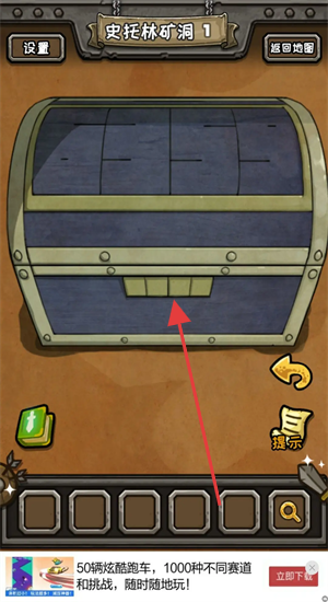 1、在【史托林矿洞1】,点击箭头指向的宝箱,尝试开启,可通过探索或道具解锁,获取奖励。