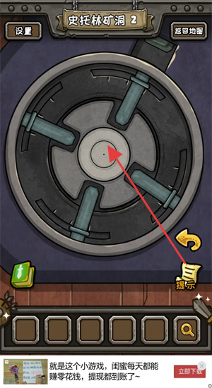 2、进入【史托林矿洞2】,操作箭头指向的圆盘机关,调整部件位置,完成解谜,开启新区域。