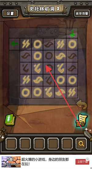 3、到【史托林矿洞3】,按箭头提示,观察符号规律,移动或匹配图案,破解谜题,推进矿洞探索。