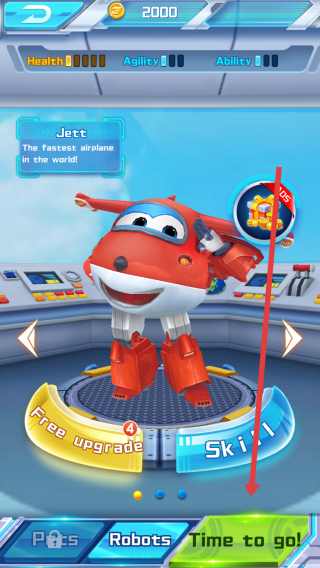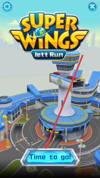 1、点击“Time-to-go!”(箭头指向),进入《Super-Wings:Jett-Run》游戏,开启跑酷冒险。