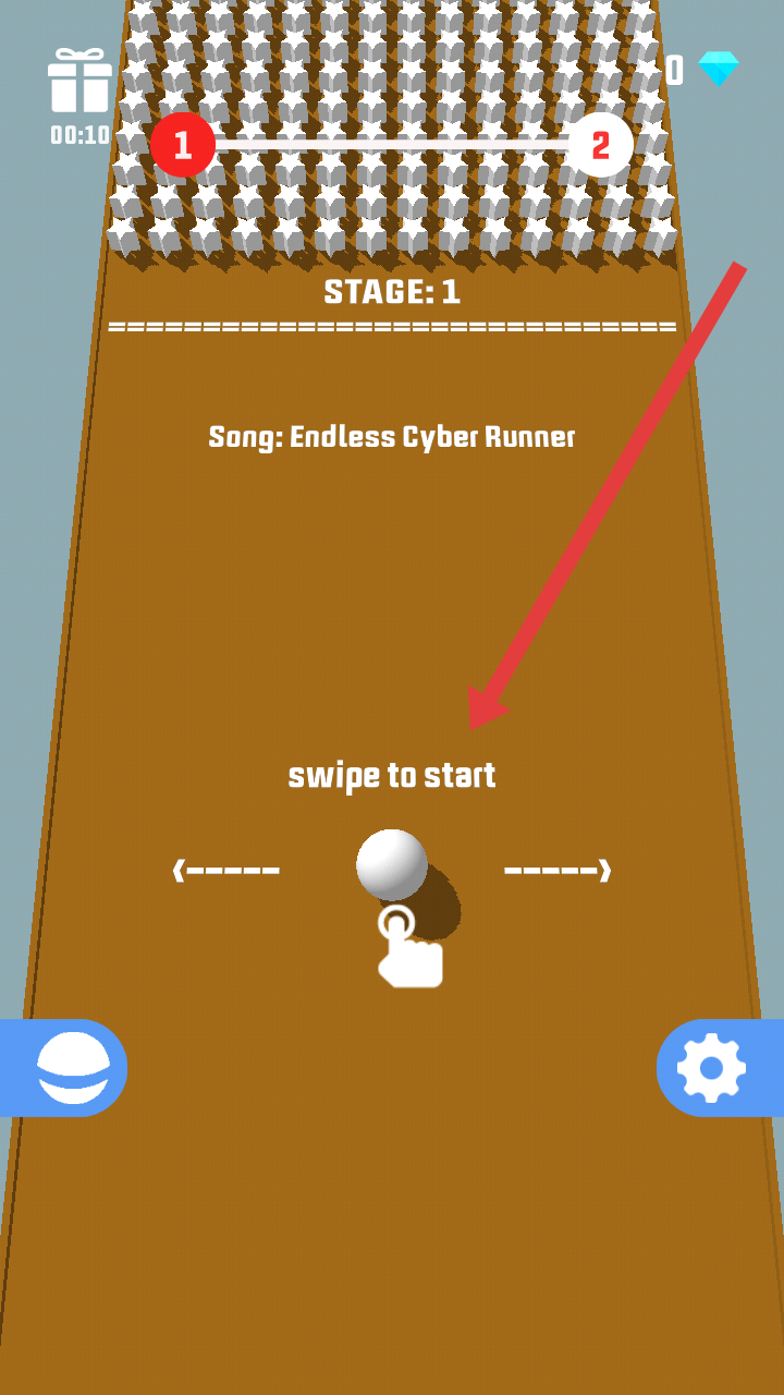 1、进入彩球衝撞的游戏界面,按照提示滑动屏幕触发【swipe to start】,启动球体开启关卡挑战。