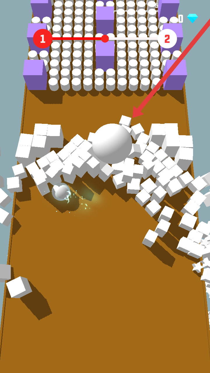 2、操控者需要操控球体进行滚动,撞击并破坏路径上的白色方块,借助撞击清除障碍以推进关卡。