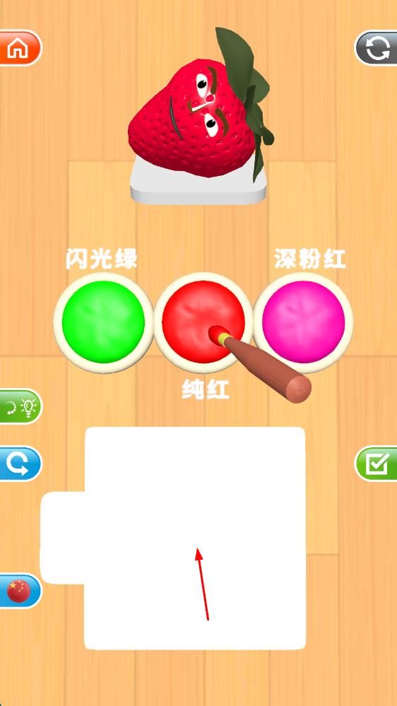 1、进入游戏后,选择初始关卡,观察目标物体的颜色,拿起画笔蘸取基础颜料,在调色盘上混合调配,尝试调出匹配的色彩。