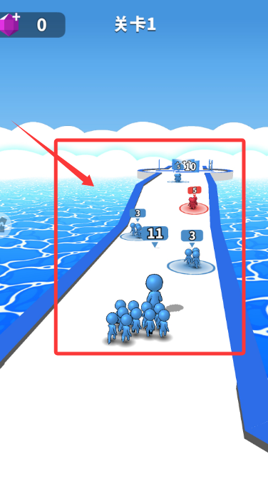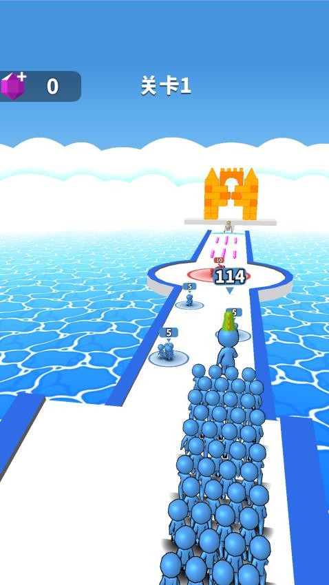 1、核心跑酷收集,控制领队火柴人左右移动,收集沿途的士兵和道具,避开削减人数的陷阱和障碍,不断壮大军团规模。