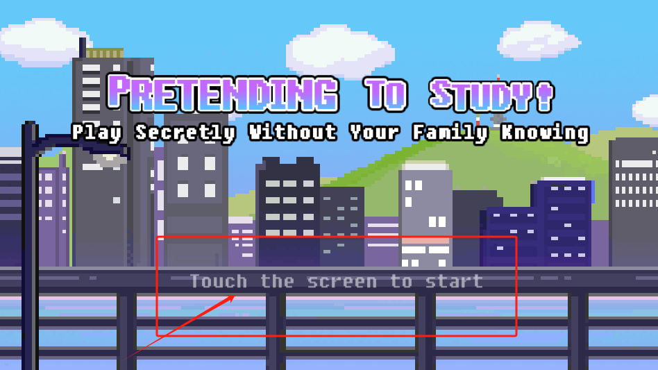 1、点击红框里的“Touch the screen to start”开始游戏,注意标题提示要偷偷玩,开启你的伪装挑战。