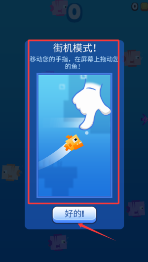 3、滑动手指移动鱼,点击好的开始街机模式。