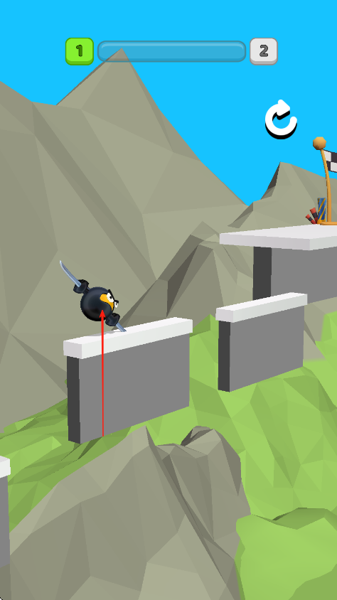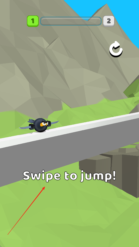 1、进入关卡后操控小鸟忍者用双刀固定在岩壁上,点击屏幕触发旋转攻击,首次操作可先消灭下方敌人熟悉攻击节奏与范围。