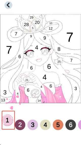 2、游玩过程中选择心仪的公主主题画作,点击对应色块为画面填充颜色,自由创作或按照数字提示完成涂色。