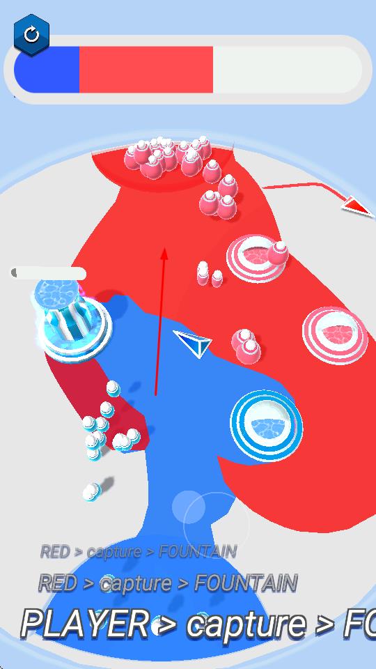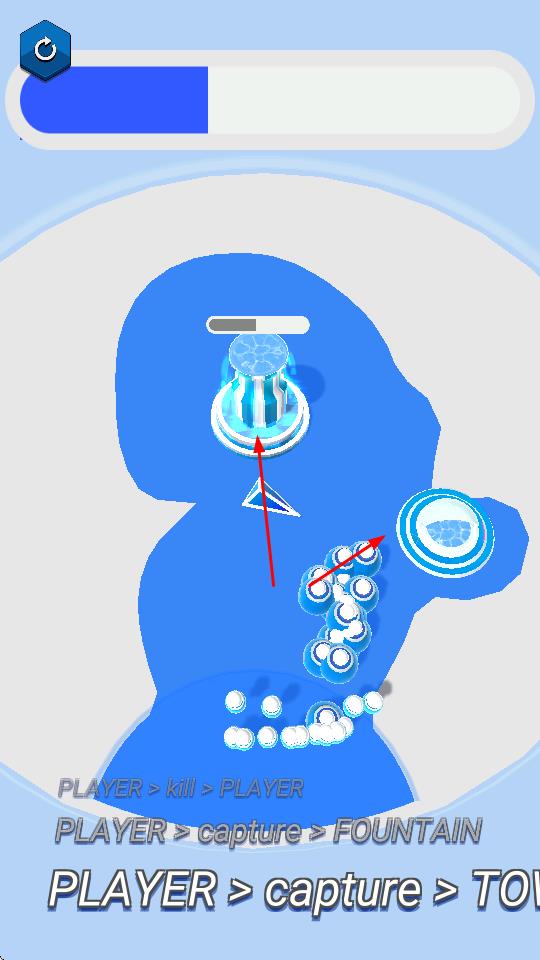 1、“占领领土”,指挥部队(白色小球)移动,通过杀敌(PLAYER>kill>PLAYER),抢占空白或敌方领土。