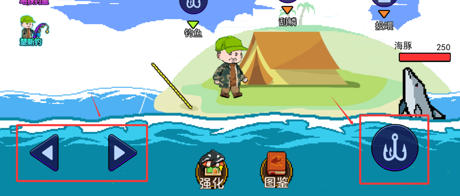 2、左边是方向操作按键,右边是钓鱼按钮。