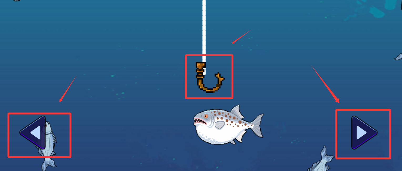 3、当鱼钩放下的时候可以操作左右方向去勾鱼。