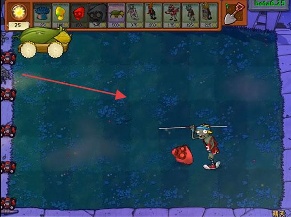 1、遇到持杆僵尸时,可提前在其行进路径布置攻击植物,利用【玉米加农炮】等远程强力植物攻击。