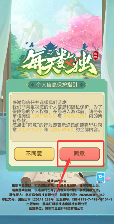 1、首次进入需勾选用户隐私协议条款,阅读后点击确认方可进入游戏界面。