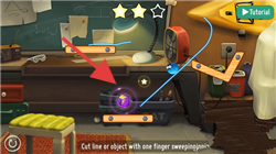 2、切割指定线条,使紫色道具沿路线移动,触发机关。