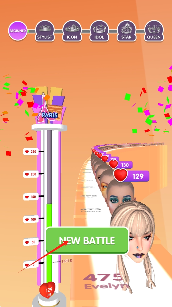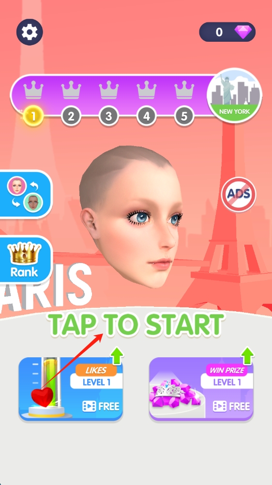 3、成长系统:通过完成关卡获得经验值提升等级,解锁新妆容与技能,使用金币购买基础升级,钻石可购买高级功能与加速成长,支持观看广告免费获取随机资源。