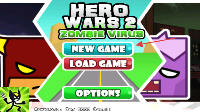 1、点击《HERO WARS 2 ZOMBIE VIRUS》启动界面,进入游戏。