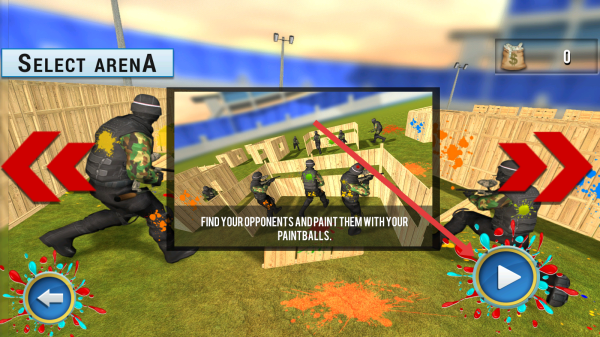 2、在场景选择页,确认“SELECT-ARENA”,点击播放按钮,进入战场,准备用彩弹标记对手,完成任务。