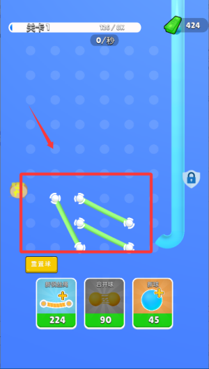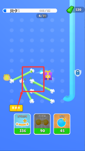 2、随着小球数量增加,合理安排每颗球的弹射顺序。利用绳索结构特点,规划出高效的通行方案提升通关效率。