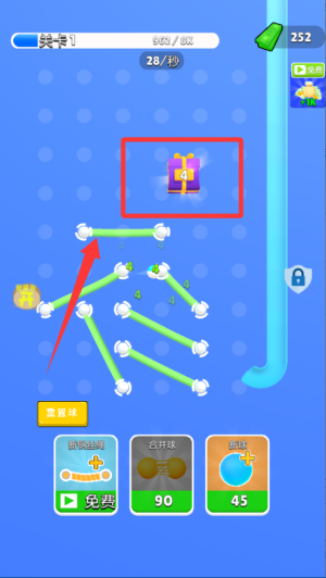 3、击中小球途中的礼盒可减少数字计数,直到归零即可开启宝箱获取奖励。注意收集关卡中的隐藏道具,帮助更轻松完成挑战。