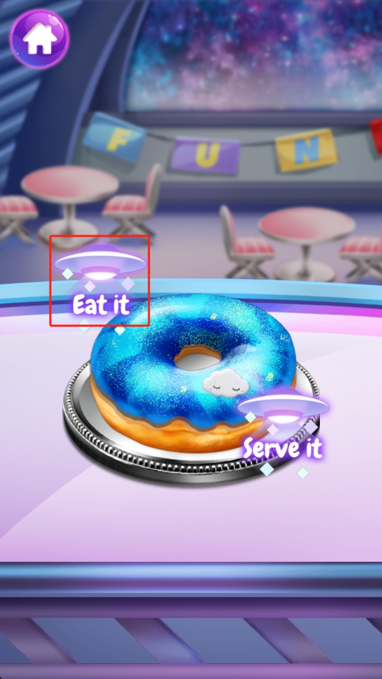 2、游玩时选择想制作的甜品类型,按照步骤添加食材、调配酱料、进行烘焙,最后用星空元素装饰成品。