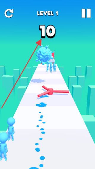 数量增减机制:赛道中会出现增加橡皮人数量的道具和减少数量的陷阱,玩家需平衡团队规模以应对不同障碍。