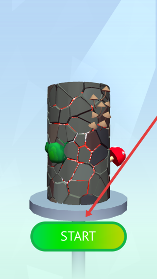 1、点击【START】按钮,启动砸击挑战,操控工具破坏岩石柱,留意隐藏物品,释放解压乐趣。