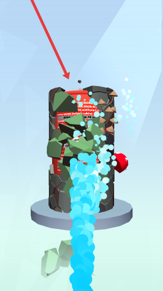 2、砸击过程中,跟随箭头方向,击碎岩石,触发水流等效果,破坏内部结构,完成关卡目标。