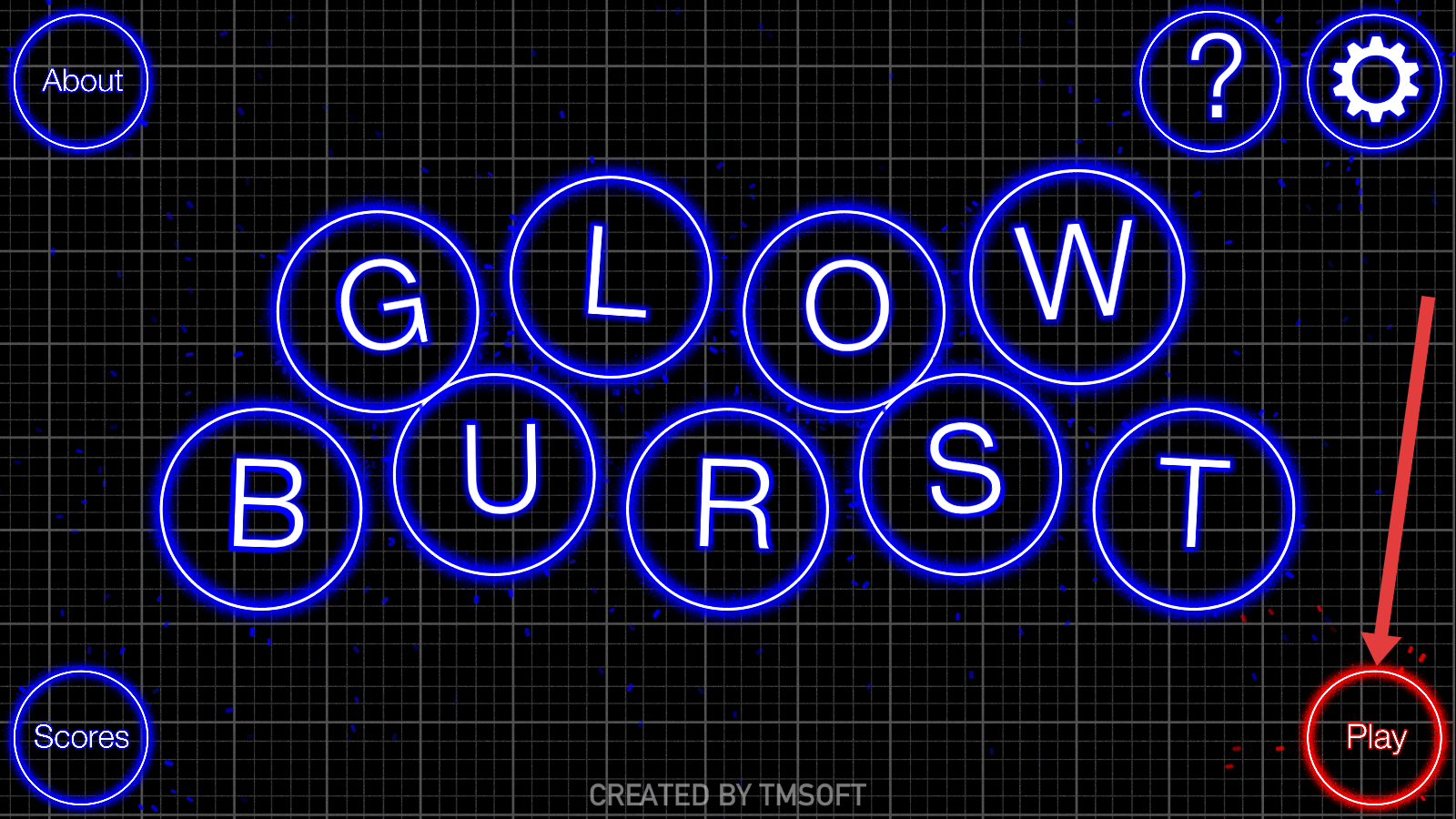 1、进入光芒爆裂的游戏界面,操控者需要点击右下角红色【Play】的按钮,开启霓虹消除冒险。