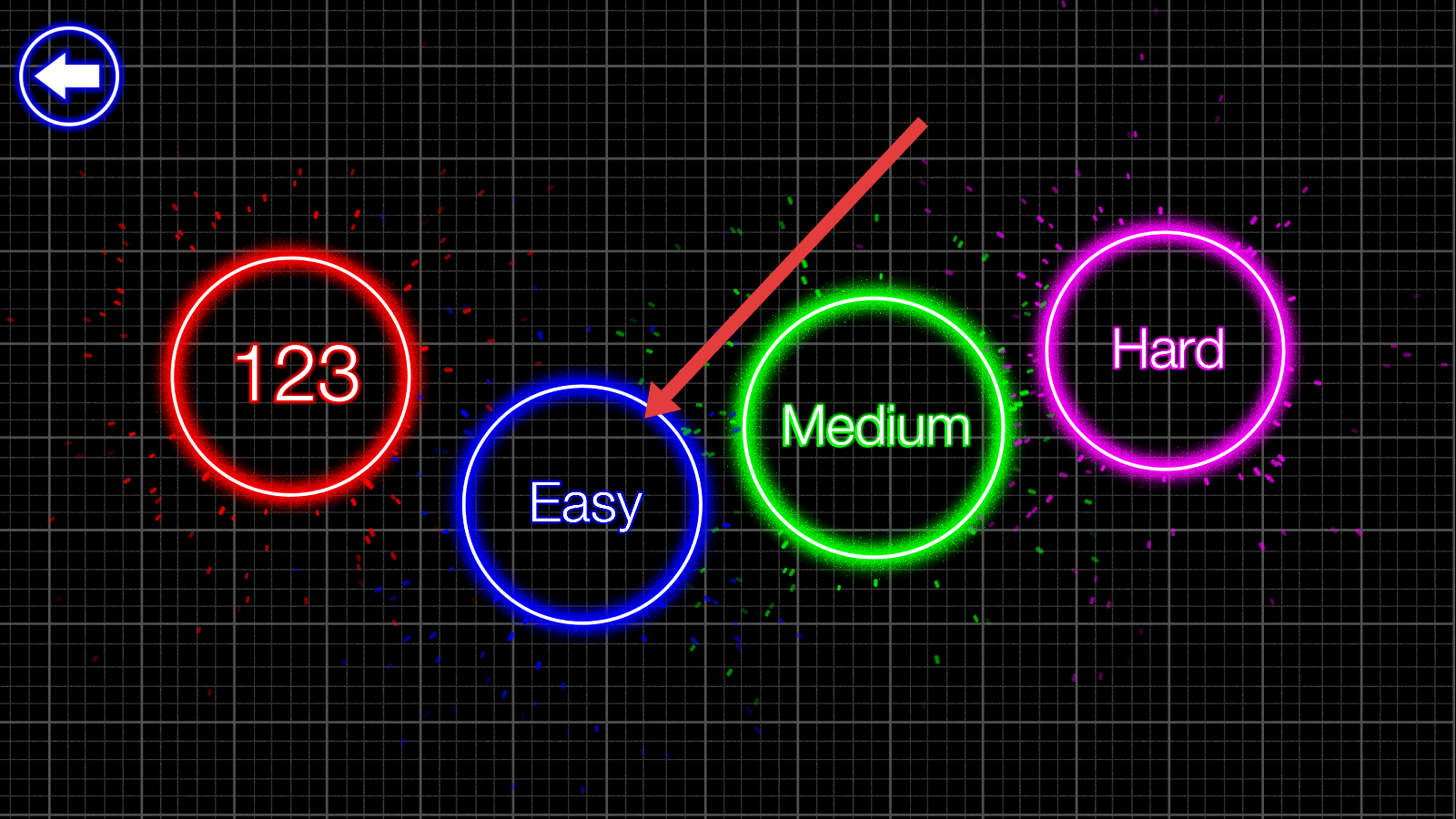 2、在光芒爆裂的关卡难度选择页,可以点击蓝色【Easy】圆环,以简单难度开启游戏,适应玩法机制。