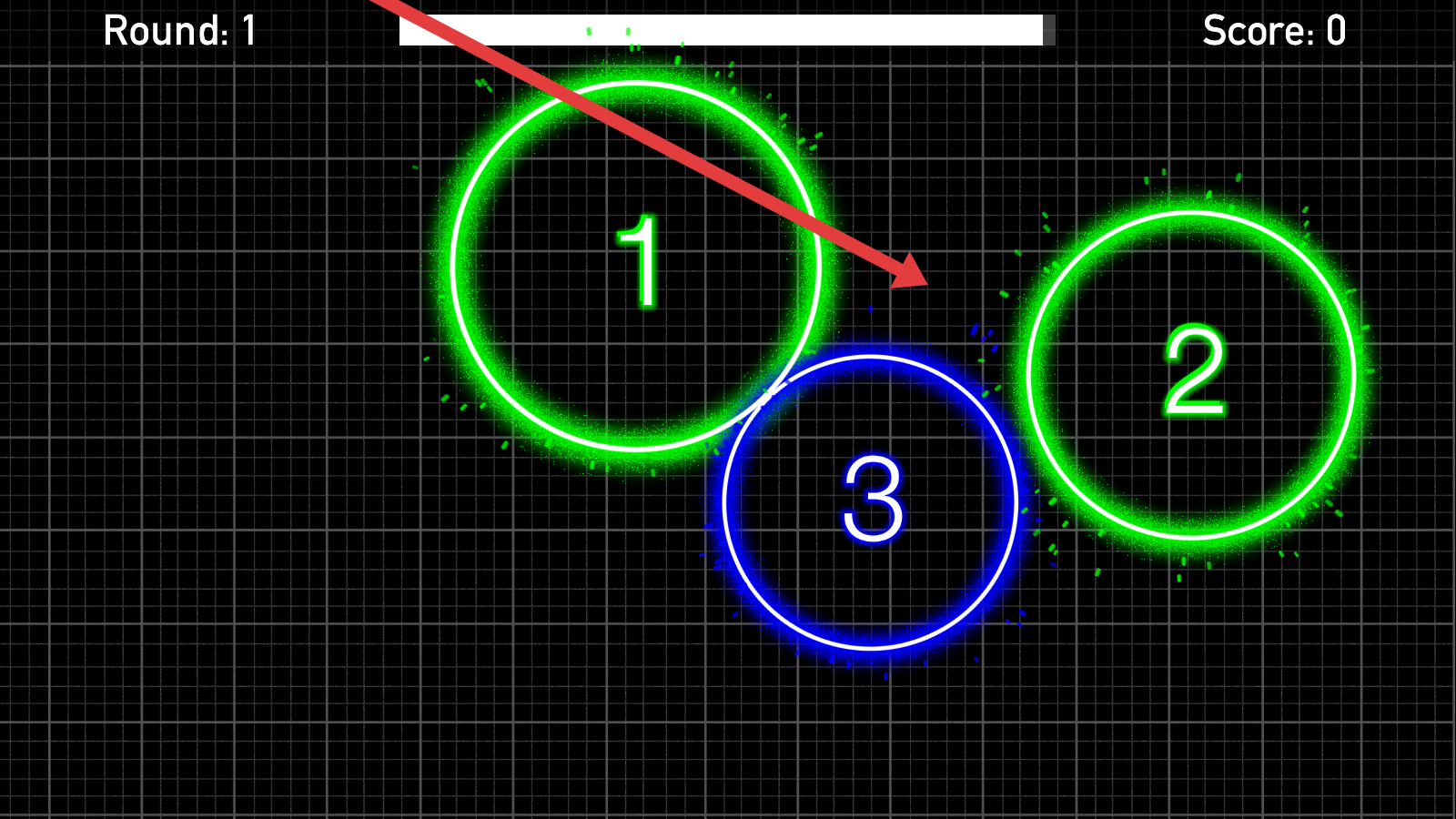 3、进入Round1的阶段,需要关注标有数字的霓虹圆环,按规则点击目标圆圈,推进游戏回合。