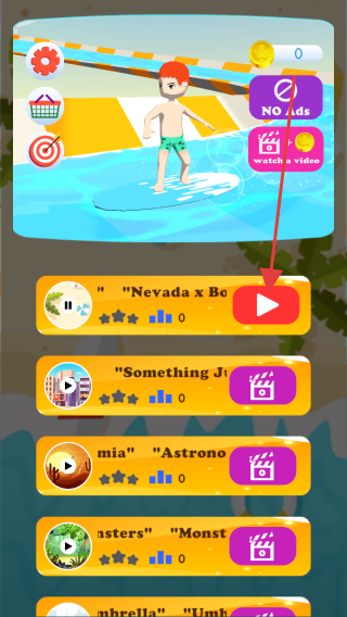 1、在音乐选择界面,点击箭头指向的“Nevada x Bo”播放按钮,设置游戏背景音乐,进入竞速准备,提升沉浸感。