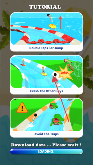 2、教程阶段,牢记“Double Taps For Jump”(双击跳跃)、“Crash The Other Guys”(撞击对手)、“Avoid The Traps”(躲避陷阱),等待数据加载完成,开启对局。