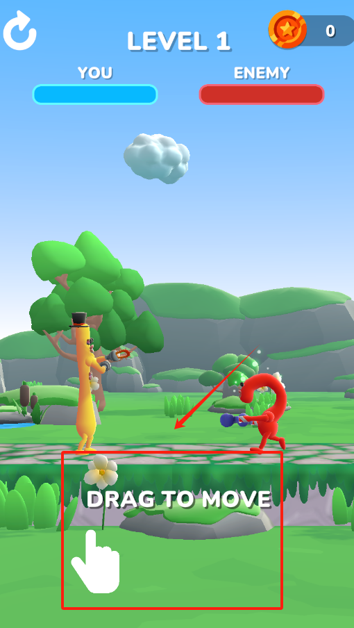 3、拖动黄色小人躲避红色敌人,牢记拖动这一操作方式,避免被敌人碰到,努力通关。