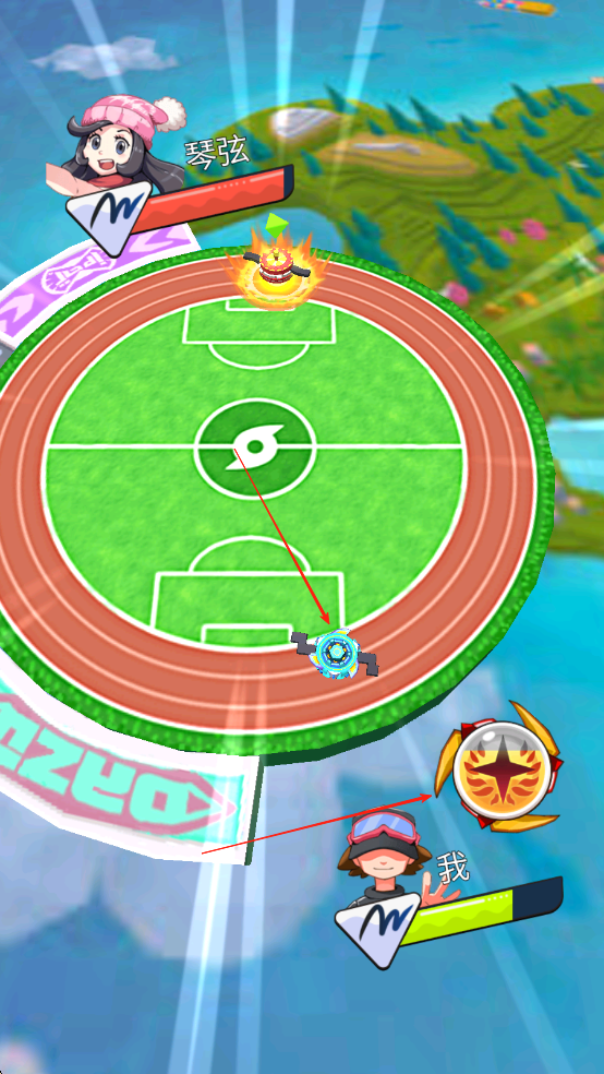 2、1v1碰撞对决:以陀螺碰撞为核心玩法,对决过程中需精准操控陀螺的移动和撞击角度,利用旋转惯性压制对手,直至一方陀螺停止旋转,胜负规则简单直观。