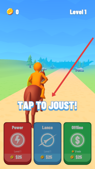 1、Level-1启动页,点击屏幕,操控骑士,在道路场景,准备“TAP-TO-JOUST”,开启骑行对战。