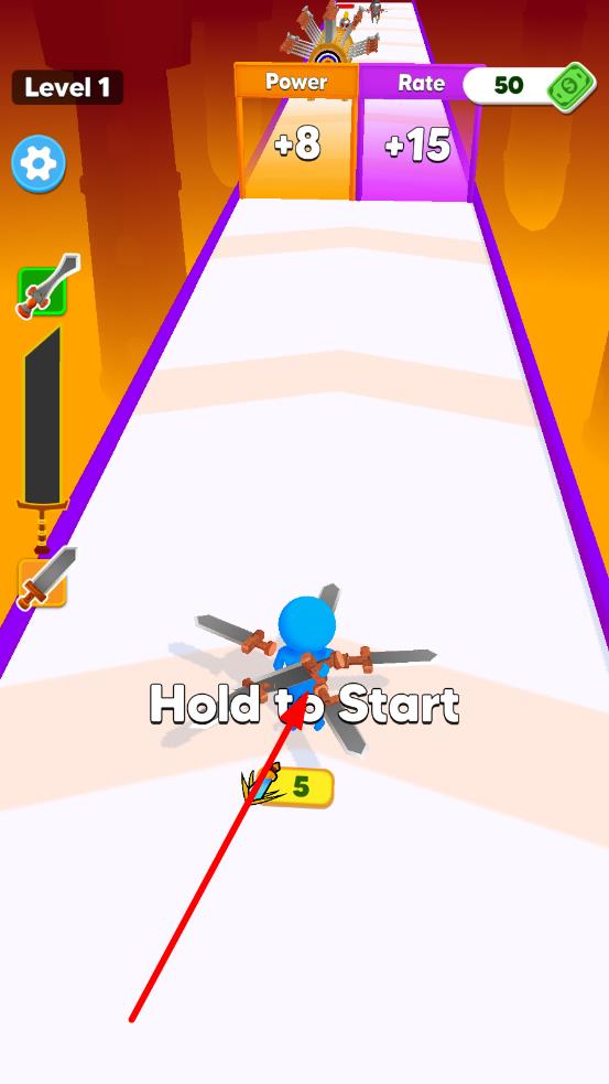 1、进入游戏后,在初始赛道操控基础角色,学习移动、挥剑攻击和跳跃躲避的基础操作,尝试拾取第一把刀剑和基础道具,熟悉战斗节奏与跑酷路线,获取初始的战力提升奖励。