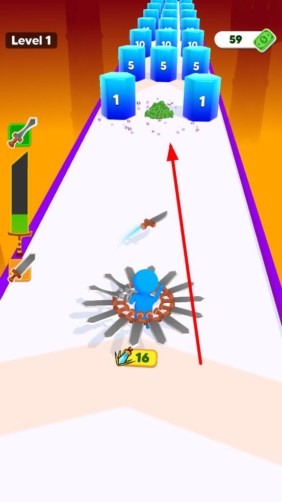 3、挑战关底BOSS关卡,应对专属攻击模式和高额血量对手,凭借升级后的炫酷刀剑技能和灵活身法躲避致命攻击,持续输出将其击败,解锁更高品质的刀剑和难度更高的新赛道。