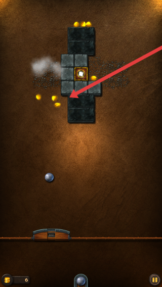 3、调整弹珠台发射的角度,来进行释放金属球,击碎黑色砖块,收集砖块旁散落的金币,获取奖励。