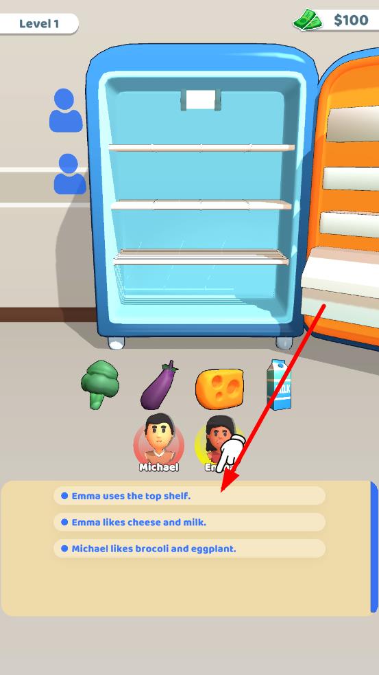 2、面对更大容量的冰箱和复杂物品组合,根据物品特性和人物要求,优先整理高频使用物品,利用抽屉、隔层优化空间,解锁更多冰箱款式和分类工具。