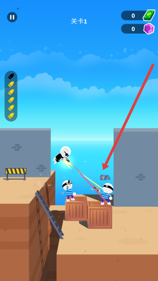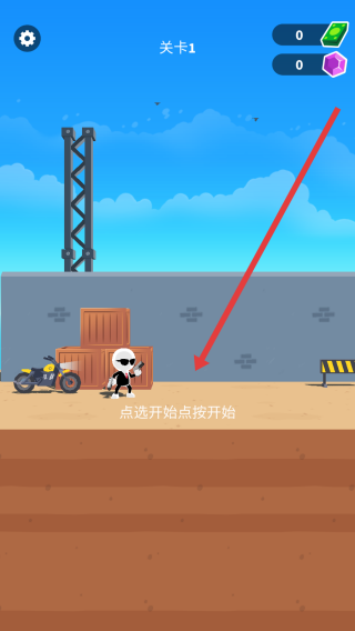 1、关卡1启动页,通过点击开始点,操控角色,在工地场景,准备射击敌人,开启闯关挑战。