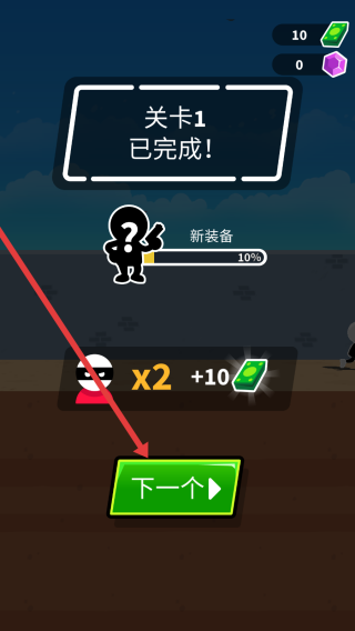 3、通关后,可以点击【下一个】按钮,进入关卡2,继续冒险,获取新装备,提升角色战力。