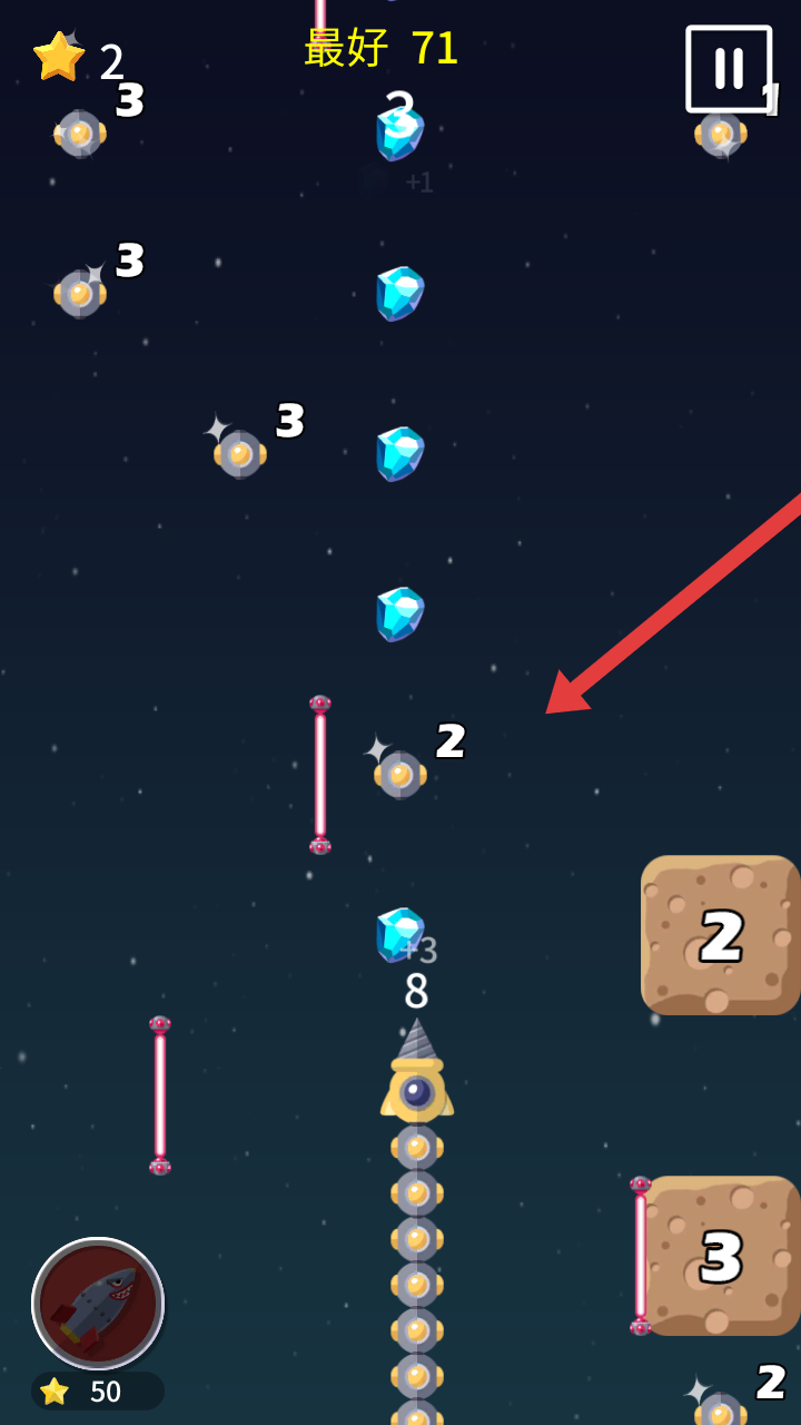 3、游戏内操控小球,瞄准带数字的砖块,借助弹射机制撞击消除,通过连续破坏积累分数,推进关卡。
