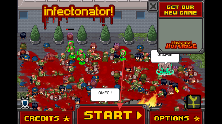 1、《Infectonator》主界面,点击下方黄色【START】按钮启动游戏。