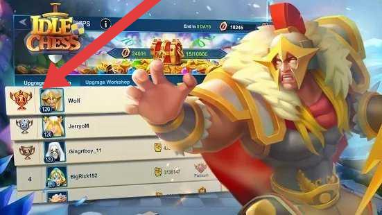 3、查看排行榜,点击箭头处的“Upgrade”,消耗资源升级工坊,提升排名,获取更多奖励和荣誉。